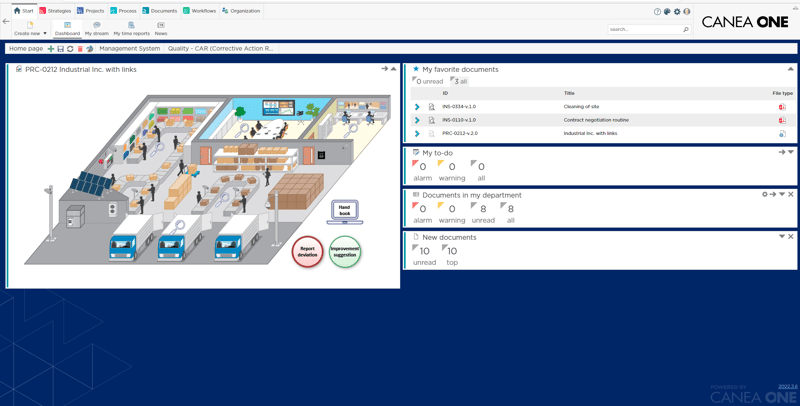 You can usefully add your company's process-oriented management system to CANEA Document. All production and distribution of documents is quality-assured and streamlined. In addition, your employees always have access to the most up-to-date version of the documents - directly via intranet, tablets and mobile phones.
